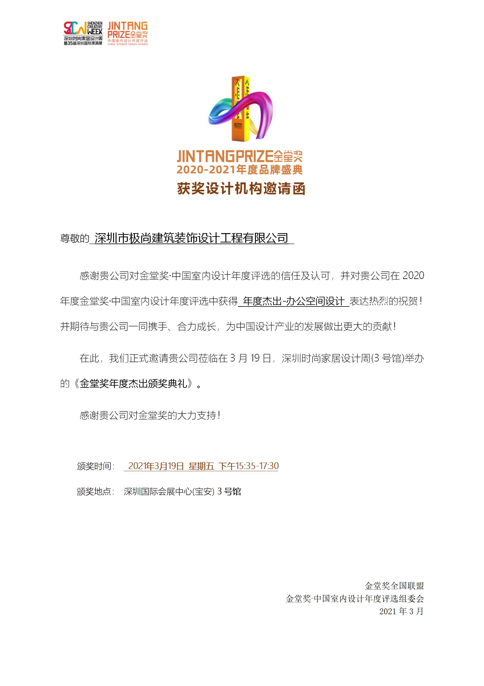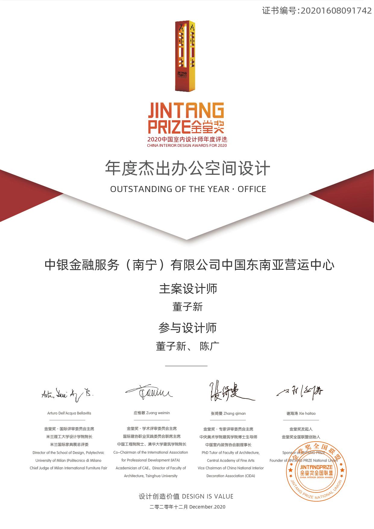 恭喜极尚中银金融服务(南宁)有限公司中国东南亚营运中心项目喜获金堂奖!