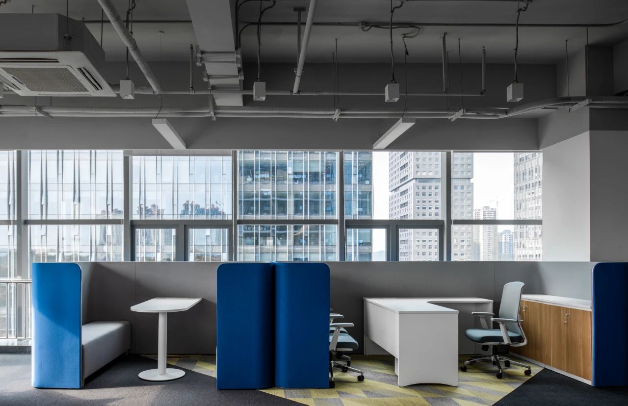 大堂在部分现状基础上改造后整体感受大气舒适,观感度大大提升,分区合理接待便捷。办公层通透明亮,空间价值最大化利用,办公氛围活跃,员工工作高效。办公区有充足的活动及讨论空间。设计的组合工位对于部门员工人数增加提供了便捷的扩展形式。