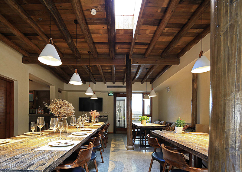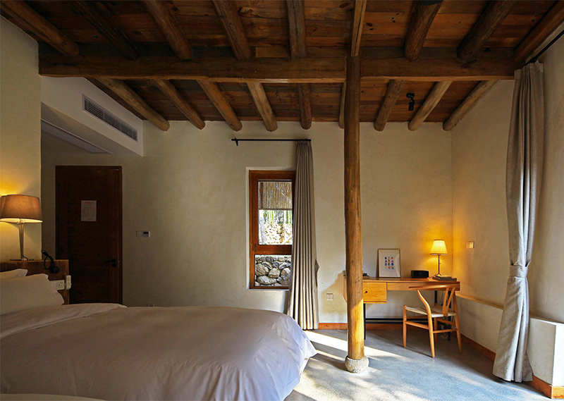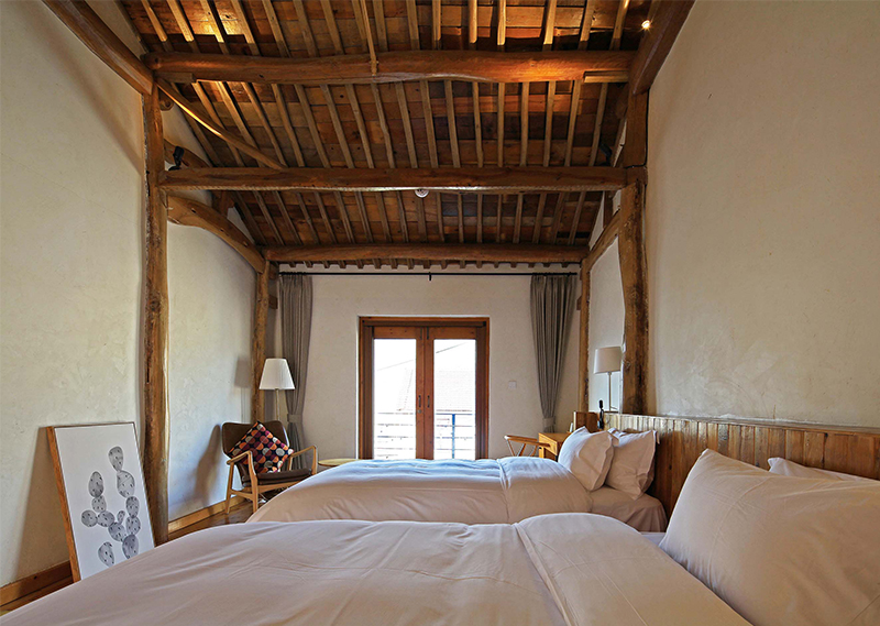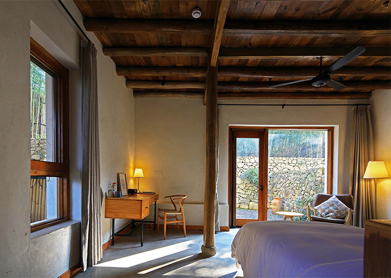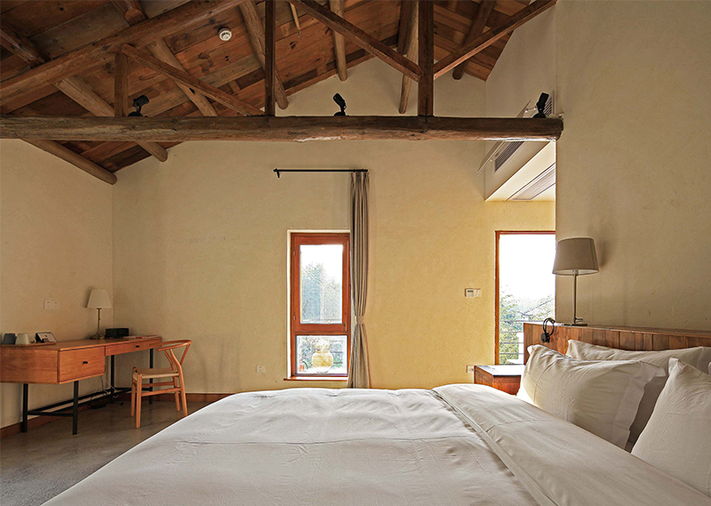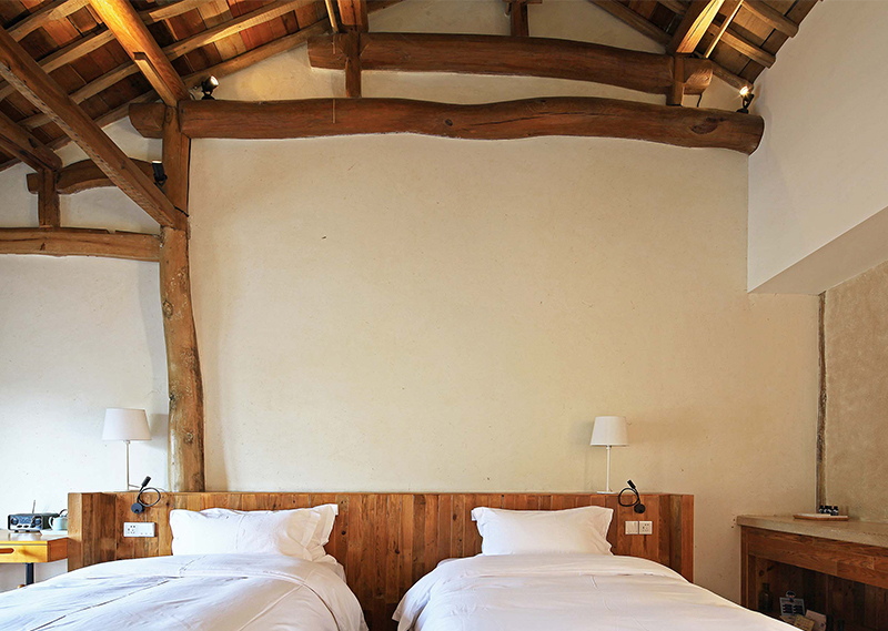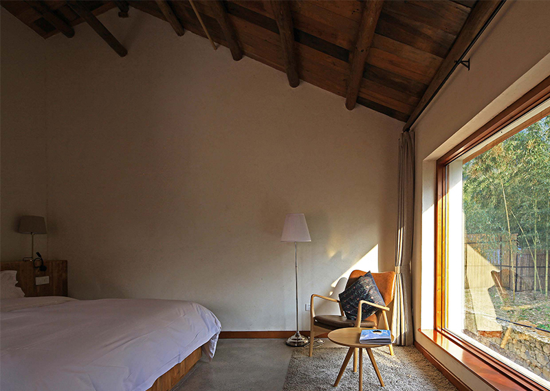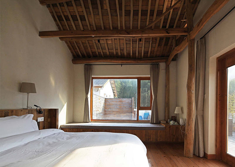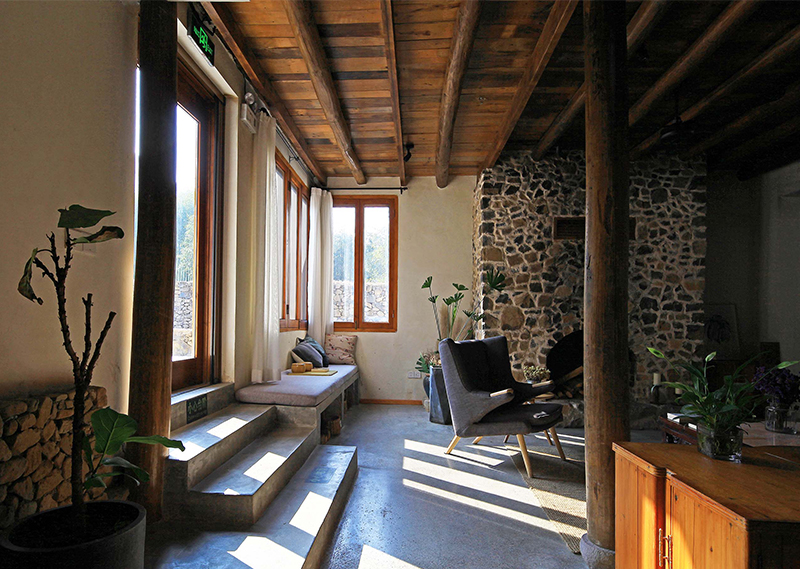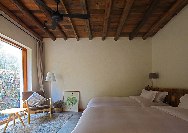 整体改造对旧建筑进行修旧如旧,尽量使用最少的动作,达到改造目的。大量使用当地人工,和传统的农村木建造技术改造,就地取材,使用本地可回收材料,遵循绿色建筑的可持续环保设计理念。对原建筑功能布局重新梳理,增加符合现代生活的机电系统,使其满足民宿的运营要求。希望未来的客人可以感受到乡村的当地属性,以及手工作业的拙笨感,让客人置身其中,可以感受到时间的流逝。整体氛围环保而简朴,体验一种原生态与现代融合的生活方式。